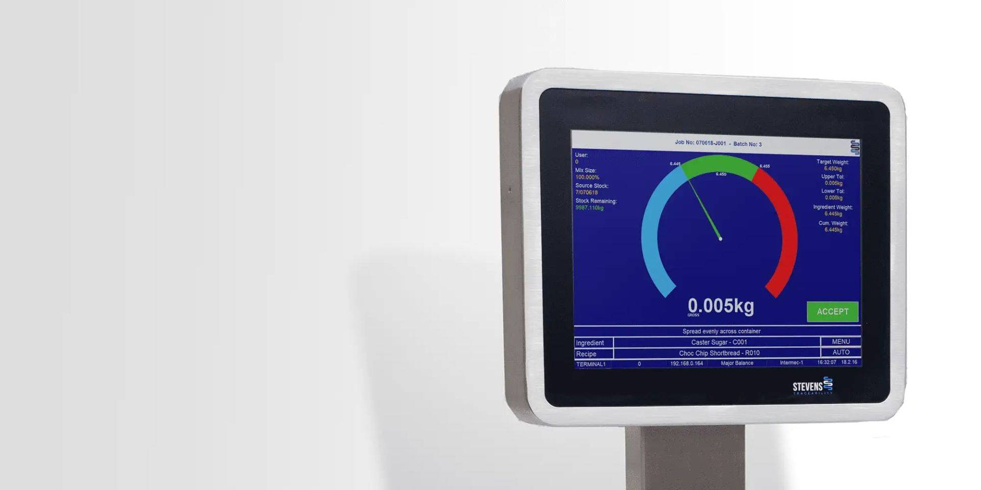 After stock intake, the team at JG Fletcher use the production module to schedule their recipes for weighing at the Venture Terminal. Using lot numbers, Essentials ensures that all ingredients in a recipe are weighed to the necessary tolerances set in the Stevens Management software. Thanks to the inclusion of the stock module, stock can also be validated, ensuring that expired stock is not consumed. Additionally, with stock being reduced in real time, the system prompts for lot changes when stock is reduced to a minimum threshold. Once weighed, the information is captured within the Stevens Traceability System and made available for reporting purposes.
